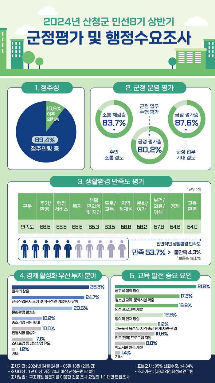 | ▲민선 8기 상반기 군정평가 및 행정수요조사 결과 인포그래픽(사진=산청군) |