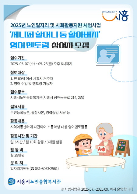 ▲제니퍼할머니, 톰할아버지 영어 멘토링 참여자 모집 포스터(사진=시흥시) |