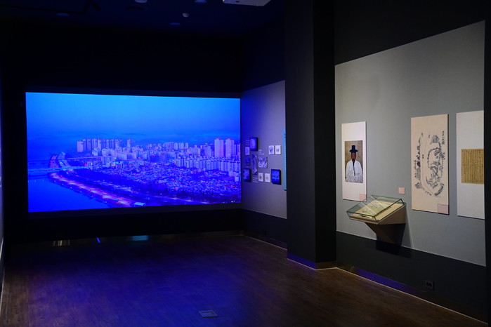 ‘진주성도(晉州城圖)에 담긴 평거의 풍류’와 ‘평거지(平居誌)에 담긴 평거의 평안’ 전시에서는 진주성도(부산시립박물관 소장품)에 담겨진 촉석루에서 광탄*까지 이어지는 뱃놀이의 모습을 평거산수도(平居山水圖)와 연계하여 미디어 전시로 재현했다.