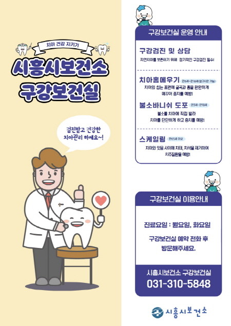 구강보건실에 대한 자세한 정보나 예약 문의는 시흥시보건소 구강보건실로 문의하면 된다.