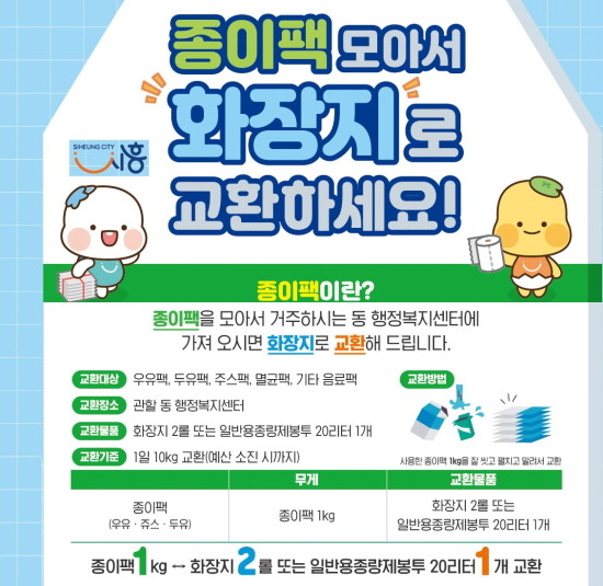 시흥시, 종이 팩 모아서 ‘화장지ㆍ종량제 봉투’로 교환하자