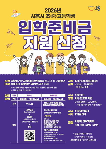 | ▲2026년 시흥시 초중고 입학준비금 지원 신청 포스터(사진=시흥시) |