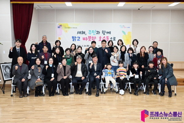 | ▲이민근 안산시장(맨 앞줄 가운데)이 지난 24일 안산미디어도서관에서 열린 '희망을 나누는 첫인사, 동행' 호수동 방문에서 참석자들과 기념촬영을 하고 있다.(사진=안산시) |