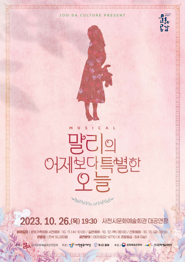 사천문화재단은 26일 오후 7시 30분에 뮤지컬 <말리의 어제보다 특별한 오늘>을 사천시문화예술회관 대공연장에서 선보인다고 13일 밝혔다.
