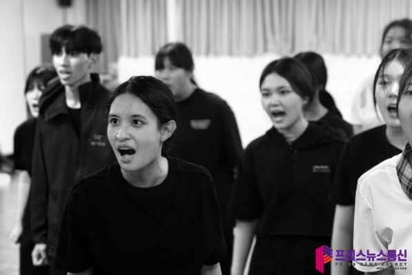 | ▲안산디자인문화고등학교 공연콘텐츠과 학생들이 청소년 창작 뮤지컬 '샘골 최용신' 공연을 위해 연습을 하고 있다.(사진=안산시) |