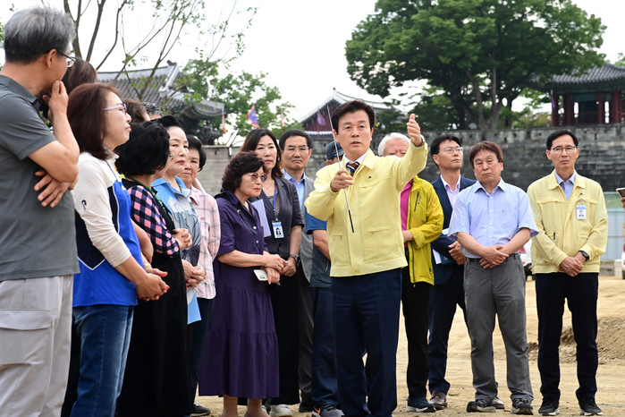 [프레스뉴스] 정호일 기자= 조규일 진주시장은 지난 17일 제 모습을 조금씩 드러내기 시작한 본성동 촉석문 앞 ‘진주대첩광장’ 조성사업 현장을 방문해 추진상황을 점검하고 관계자들을 격려하면서 안전사고 예방에 철저를 기할 것을 당부했다.