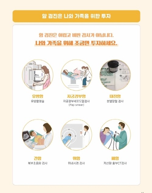 국가암검진사업은 암을 조기에 발견해 치료율을 높이고 사망률을 낮추기 위해 시행되는 제도다. 검진 비용 지원 대상자는 의료급여 수급권자와 건강보험 가입자(피부양자 포함) 중 보험료 부과 기준 하위 50%에 해당하는 시민으로, 직장가입자는 월 보험료 12만7천500원 이하, 지역가입자는 월 보험료 6만 원 이하인 경우 해당된다.
