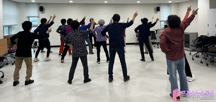 | ▲지난해 10월 대부보건지소 맞춤형 건강증진교육에 참여한 어르신들이 댄스 활동을 펼치고 있다.(사진=안산시) |