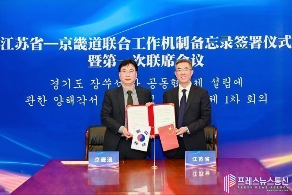 [프레스뉴스] 장현준 기자= 경기도와 중국 경제규모 2위 장쑤성(江蘇省)이 경제.농업기술.보건의료.기후환경 등을 아우르는 실무협의체인 ‘공동협의체’를 설립하고 연례회의를 개최해 정례적인 만남을 갖기로 27일 합의했다.