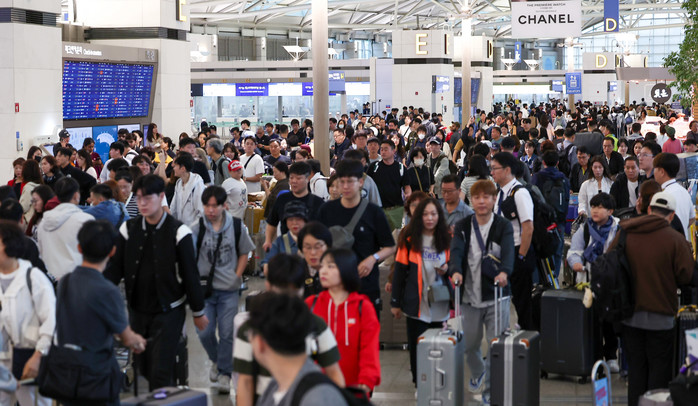 | ▲ 2일 오전 인천국제공항 제1여객터미널이 여행객들로 북적이고 있다./사진=뉴스1 |