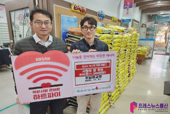 [프레스뉴스] 장현준 기자= 안산시(시장 이민근)는 지난 21일 주님의교회(담임목사 오영석)로부터 관내 저소득 가정을 위한 사랑의 쌀 10kg 400포(1,300만 원 상당)를 기탁받았다고 22일 밝혔다.