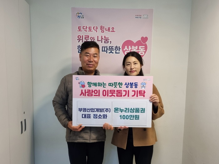 [프레스뉴스] 정호일 기자= 진주시 상봉동행정복지센터는 지난 19일 (주)부영산업개발에서 설 명절을 맞아 관내 도움이 필요한 이웃에게 전달해달라며 온누리상품권 100만 원을 기탁했다고 밝혔다.