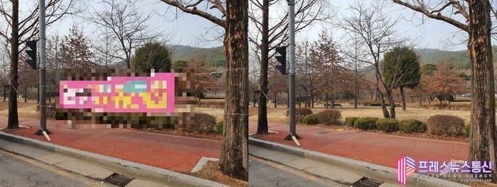 | ▲불법 유동광고물 제거 전후 사진(사진=안산시) |