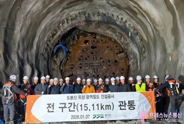 경기도는 2020년 12월 공사착공 이후 약 5년 만에 도봉산~옥정 광역철도 공사구간 전체 터널이 연결되면서 15.11km가 모두 관통됐다고 8일 밝혔다.