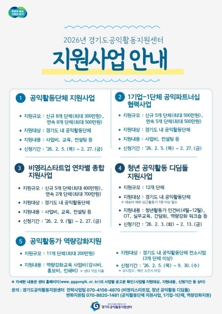 | ▲2026년 경기도공익활동지원센터 지원사업 안내 포스터(사진=경기도) |