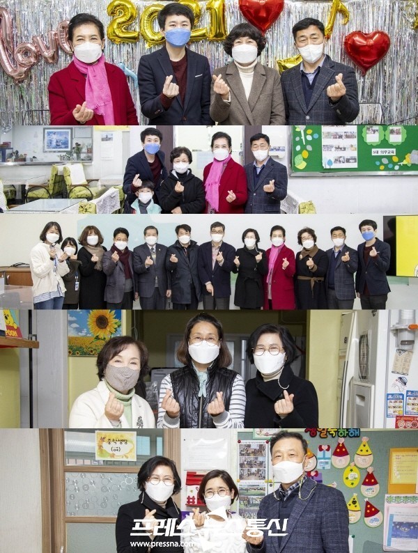 시의회 박은경 의장과 윤석진 부의장, 김동수 기획행정위원장, 강광주 의회운영부위원장, 이진분 문화복지부위원장, 나정숙, 송바우나, 한명훈, 정종길, 이경애 의원은 22일 안산 지역아동센터와 안산명문가 지역아동센터, 안산시장애인복지관, 공동생활가정 초록반디의집, 사랑나눔 지역아동센터 등 사회복지시설 5곳을 번갈아 찾아 시설 관계자들을 위문했다.