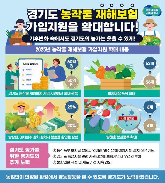 ▲경기도, 2025 농작물재해보험 가입지원 확대 그래픽(사진=경기도) |