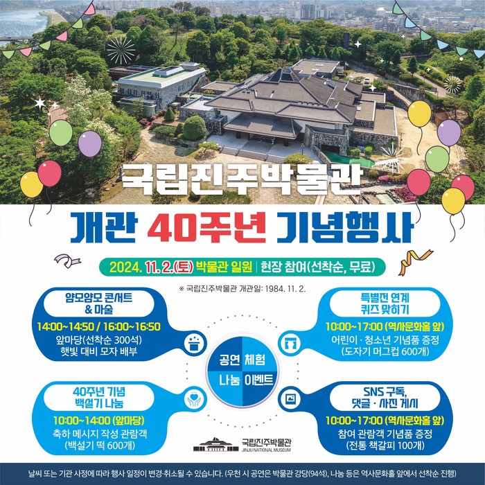 | ▲국립진주박물관(관장 장용준)은 개관 40주년을 맞아 11월 2일(토) 박물관 일원에서 기념행사를 개최한다 (사진=국립진주박물관) |