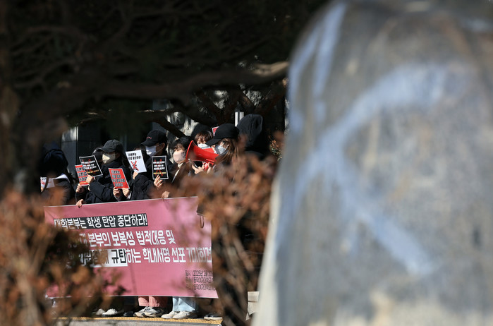 동덕여대 페미니즘 동아리 사이렌은 성명을 내고 “동덕여대에서 학사·안전·명성의 영향을 직접적으로 받는 주체는 명백히 학생들”이라며 “학생들의 삶과 학습 환경을 좌우하는 결정에서 교직원의 의견이 학생 의견보다 압도적으로 큰 비중을 차지하는 것이 정당하고 말할 수 있느냐”고 비판했다.