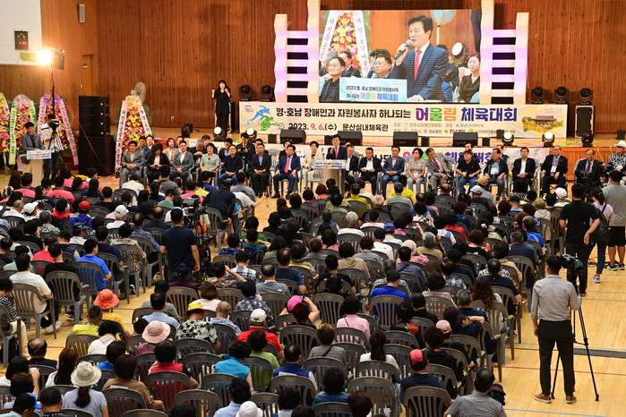 [프레스뉴스] 정호일 기자= 진주시장애인체육회는 6일 문산실내체육관에서 800여 명이 참석한 가운데 ‘2023 영·호남 장애인과 자원봉사자 하나 되는 어울림 체육대회’를 개최했다.