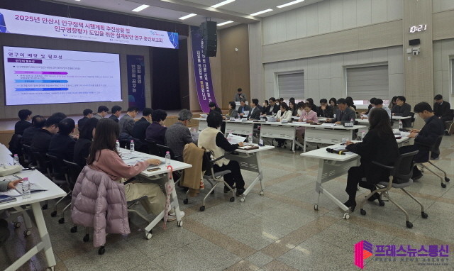 [프레스뉴스] 장현준 기자= 안산시(시장 이민근)는 지난 23일 안산시청 대회의실에서 ‘2025년 인구정책 시행계획 추진 상황 및 인구영향평가 도입연구 중간 보고회’를 개최했다고 24일 밝혔다.