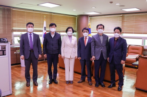| ▲ 안산시의회가 21일 의장실에 의회 30년사 발간을 위한 첫 편찬위원회를 개최했다. 사진 왼쪽부터 편찬위원으로 선임된 이용호 의회사무국장과 김태희 의회운영위원장, 박은경 의장, 유재균 한국산업기술원 지방자치연구소 부소장, 김두수 전 안산시의회 문화복지 전문위원, 윤석진 부의장의 모습. |