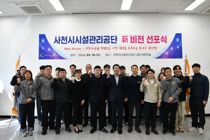 [프레스뉴스] 정호일 기자= 사천시시설관리공단은 지난 19일 본부 대회의실에서 경영혁신 추진과 미래로의 도약을 다짐하는 ‘신(新)비전 선포식’을 개최했다.