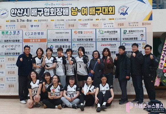 [프레스뉴스] 장현준 기자= 안산시(시장 이민근) 단원구 백운동 여성배구단은 지난 8일 ‘2026 안산시협회장배 남·녀 배구대회’에서 여성부 준우승 입상을 하는 쾌거를 이뤘다고 10일 밝혔다.