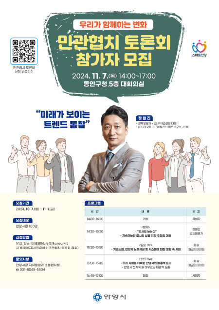 최대호 안양시장은 “이번 토론회는 시민들의 다양한 의견을 수렴하고 민관이 협력해 안양시의 미래를 함께 그려 나가는 소중한 기회가 될 것”이라고 전했다.