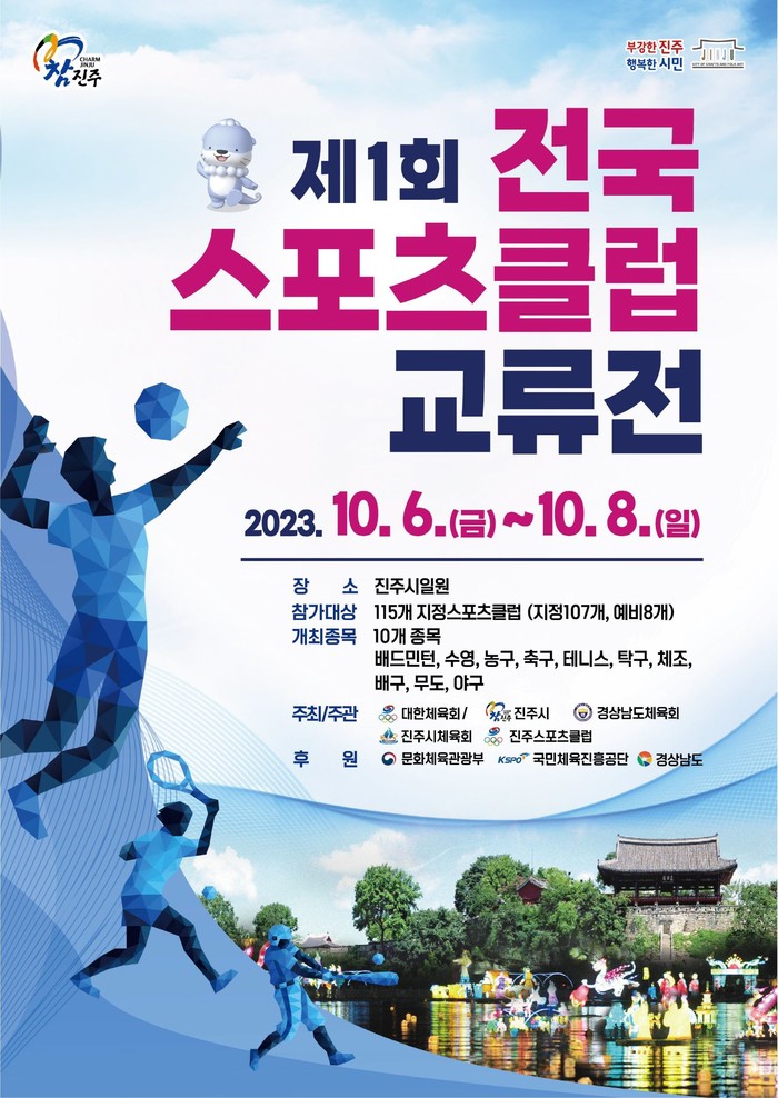 특히 행사는 지정스포츠클럽 간 화합과 교류의 장 마련, 생활체육인구 증가와 지역 통합을 위해 전국 규모로 치러지는 만큼, 제1회 개최지인 진주시의 위상을 높이고 지역경제 활성화에도 큰 도움이 될 것으로 기대된다.