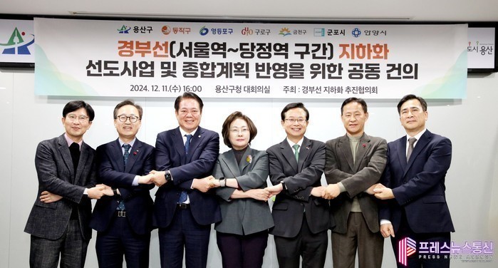 [프레스뉴스] 장현준 기자= 안양시가 지난 11일 16시 용산구청 대회의실에서 경부선 지하화 추진협의회(안양시, 용산구 등 7개 자치단체)를 통해 서울역에서 안양시의 석수·관악·안양·명학역을 경유하고 당정역까지 이어지는 경부선 지상 철도구간을 지하화 선도사업으로 선정해달라고 촉구했다.