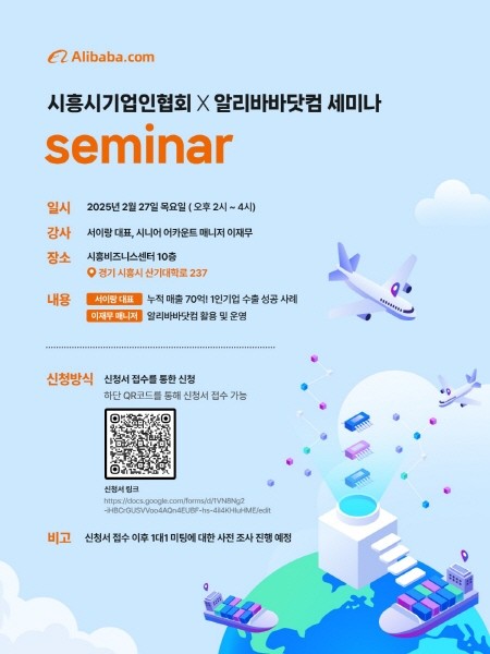 세미나의 주요 내용으로는 ▲1인 기업 성공 수출 사례 ▲알리바바 닷컴 활용 및 운영으로 수출과 관련된 사항으로 구성된다. 참가를 원하는 기업은 전단 큐아르(QR) 코드를 통해 신청할 수 있으며, 이후 일대일 미팅에 대한 사전 조사도 진행될 예정이다.
