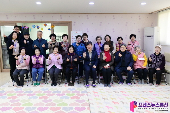 | ▲이민근 안산시장(맨 앞줄 가운데)이 지난 17일 '희망을 나누는 첫인사, 동행' 선부2동 방문에서 '건강사랑방 뗏골센터' 어르신들과 기념촬영을 하고 있다.(사진=안산시) |