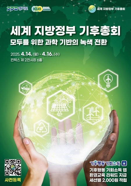 우선 14일부터 16일까지 고양시 킨텍스 제2전시장 6B홀에서 세계 지방정부 기후총회를 개최한다. 이는 파리협약에 따라 국가 온실가스 감축 목표가 갱신되는 2025년을 맞아 지방정부의 기후 대응 전략과 시민의 자발적 참여를 촉진하기 위한 국제적 담론의 장이다.