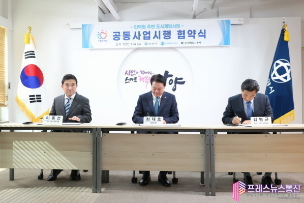[프레스뉴스] 장현준 기자= 안양시가 인덕원 주변 도시개발사업의 본격적인 추진을 위해 경기주택도시공사(GH), 안양도시공사와 공동사업시행 기본협약을 체결했다.