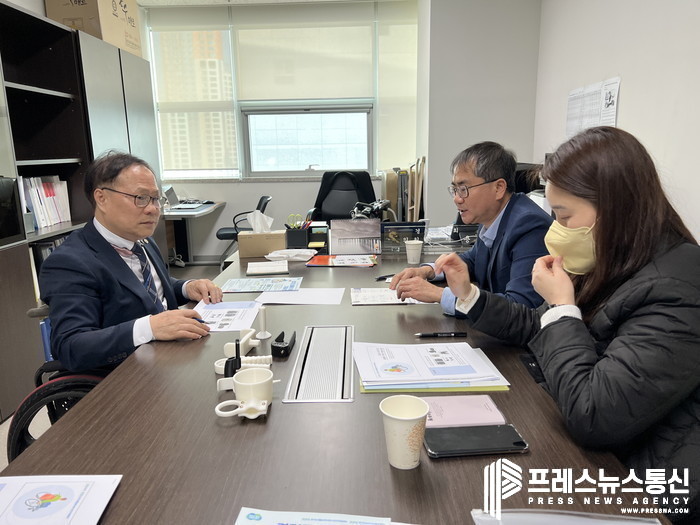 박재용 경기도의원(보건복지위원회, 더불어민주당, 비례)은 23일 경기도의회에서 강인학(경기도재활공학서비스연구지원센터장), 황민영(경기도재활공학서비스연구지원센터 연구개발팀장)과 “경기도 휠체어 가방 지원 사업” 관련 정담회를 가졌다.