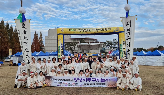 | ▲창녕군(군수 성낙인)은 지닌 19일~20일까지 이틀간 함안군 함주공원에서 열린 제42회 경남민속예술축제에서 창녕시무구지놀이가 우수상을 수상했다고 밝혔다. (사진=창녕군) |