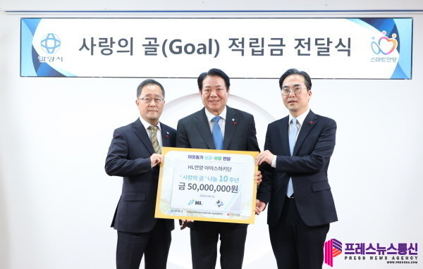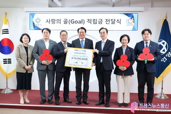 전달식은 안양시와 HL홀딩스(주), 경기사회복지공동모금회가 2015년 체결한 ‘사회공헌 협력을 위한 협약’에 따른 ‘사랑의 골 적립금’ 전달로 진행됐다.