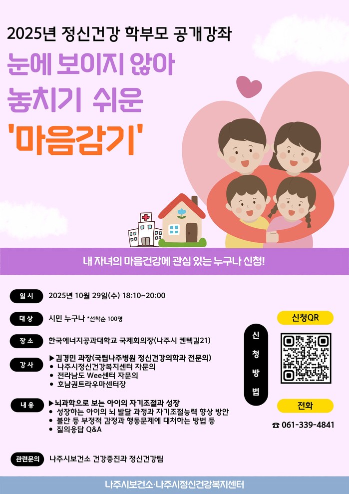 - 나주시 보건소, ‘2025년 정신건강 학부모 공개강좌’ 개최