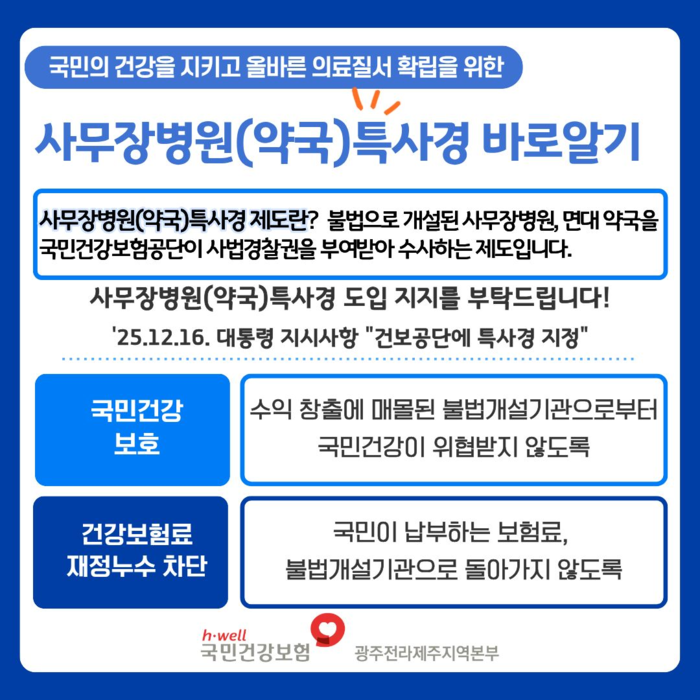 건보공단 광주전라제주지역본부, 사무장병원 특사경 제도 홍보 카드뉴스 제작