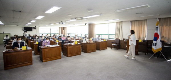 이날 교육은 박은경 의장을 비롯한 의원들과 의회사무국 직원들을 대상으로 오전에는 전문 부문, 오후에는 교양 부문으로 나눠서 진행됐다.