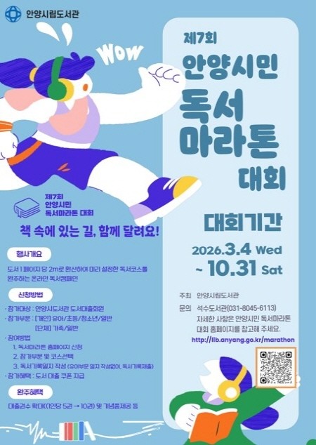 안양시도서관 관계자는“독서마라톤 대회를 통해 시민들이 독서를 일상의 습관으로 즐기고, 완주의 성취감과 책 읽는 즐거움을 함께 느끼는 계기가 되길 바란다”고 말했다.