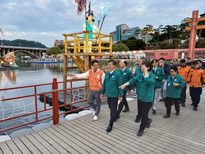 [프레스뉴스] 정호일 기자= 행정안전부 재난안전관리본부 이용철 안전예방정책실장이 19일 ‘진주남강유등축제’ 현장을 찾아 축제장 상황을 점검했다.