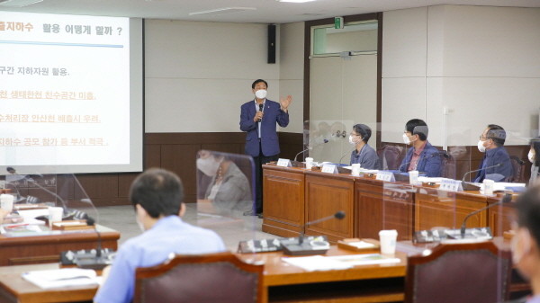 향후 장상지구가 들어서면 종말처리를 거친 하수가 안산천으로 흘러 들어오게 돼 있어, 지하수로 유량을 늘리는 것이 수질 유지에 도움이 된다는 사실 또한 언급했다. 그는 이같이 신안산선 공사 유출지하수를 활용하는 방식을 통해 환경부 주관의 ‘유출지하수 활용 시범사업 공모’에 나설 필요가 있다고도 했다.