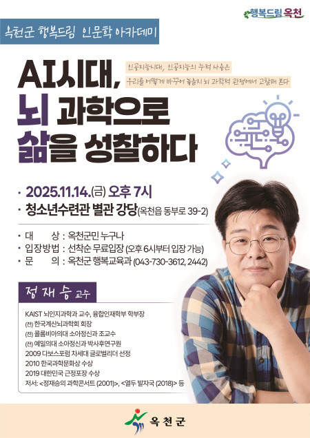 | ▲AI시대, 뇌 과학으로 삶을 성찰하다, 정재승 KAIST 교수 강연 포스터(사진=옥천군) |