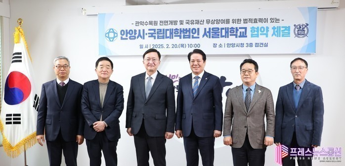 최대호 안양시장과 유홍림 서울대 총장은 20일 오전 10시 시청 3층 접견실에서 ‘관악수목원 전면개방 및 국유재산 무상양여를 위해 법적효력이 있는 협약(MOA)’을 체결했다.