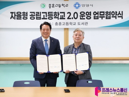 [프레스뉴스] 장현준 기자= 안양시가 지난 7일 오후 3시 충훈고등학교 도서실에서 충훈고등학교와 ‘자율형 공립고 2.0’ 추진을 위한 업무협약을 체결했다고 8일 밝혔다.