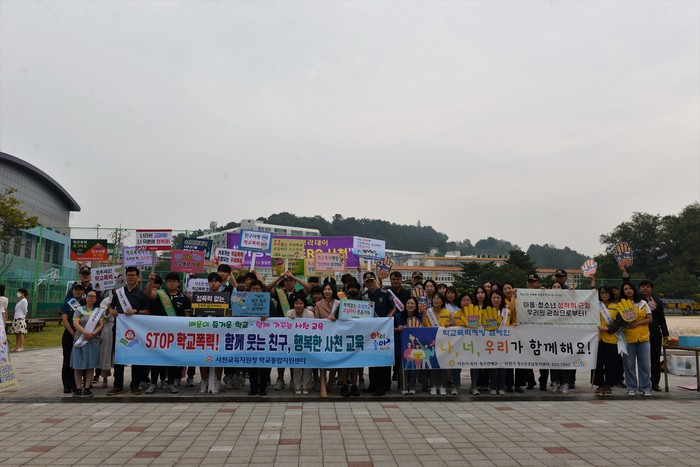 | ▲사천경찰서 학교폭력근절 캠페인(사진=사천경찰서 제공) |