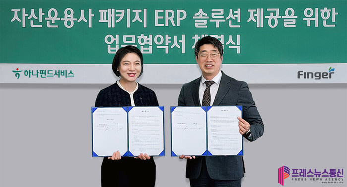 이번 협약은 하나펀드서비스가 구축한 (펀드)사무관리시스템 ‘HINTs(힌츠)’와 책무구조도시스템에 Finger의 클라우드 기반 패키지 ERP시스템을 결합해 제공함으로써 중소형 자산운영사의 경영 관리 전반을 디지털화하고 업무 효율을 향상시키기 위해 마련됐다.