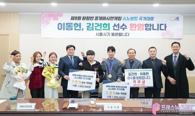 [프레스뉴스] 장현준 기자= 임병택 시흥시장이 28일, 제9회 중국 하얼빈 동계아시안게임 스노보드 국가대표 김건희ㆍ이동헌(매화고)에 격려금(각 100만 원)을 전달했다.
